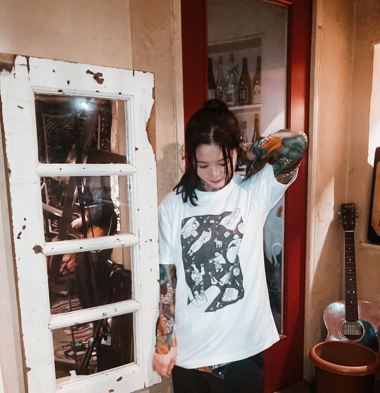 劇場物販で大人気だった登場人物が宇宙を漂うイラストTシャツです。